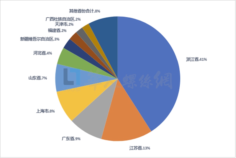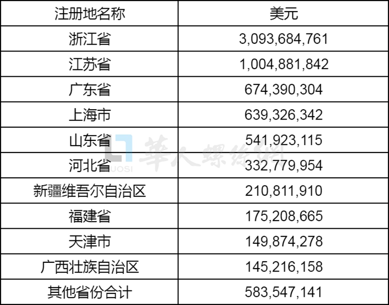 2025年前三季度,浙江、江苏及广东三省仍稳居中国紧固件出口前三甲,浙江省更是突破了30亿美元,占据全国出口总额的41%;但新疆维吾尔自治区另辟蹊径,作为前十中唯一内陆省份,凭借独特区位优势实现逆袭。