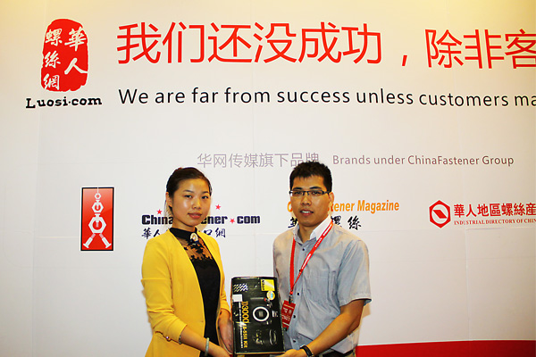 2013年广州紧固件专业展于2013年11月12日-14日在广州琶洲保利世贸博览馆隆重举行。广州展虽然是华网在华南地区的首秀,但是得到了众多参展商和观展商的肯定。网上预登记也是得到大家的热烈响应。据统计,2013年广州展在线预登记观众达到2600人,为了答谢广大观众对广州展的大力支持,展会主办方华人螺丝网特设现场抽奖活动,分别在11月12日及13日下午进行抽奖活动。奖品包括:特等奖:42寸3d创维电视机;一等奖:佳能数码相机;二等奖:苹果ipod;三等奖:高级商务拉杆箱。