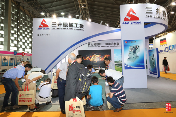 华网记者在展会现场发现,韩国孝东、宁波思进、腾工、上海岳展、卡锣、萨克玛、三井机械、威夫斯、宁波海星、瑞科、浙江友信、台湾国菱(东莞铭基)、秉锋(东莞安盛)、东莞韩诚、嘉善力天、上海键财、东莞金骐、广东钰海等企业不约而同选择大面积特装,展位装修精美,特色十足。