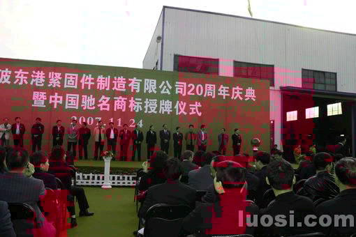 2007年11月24日,宁波东港紧固件制造有限公司迎来了热烈隆重的20周年庆典。就在同一天,宁波东港紧固件制造有限公司举行了振奋人心的中国驰名商标授牌仪式。