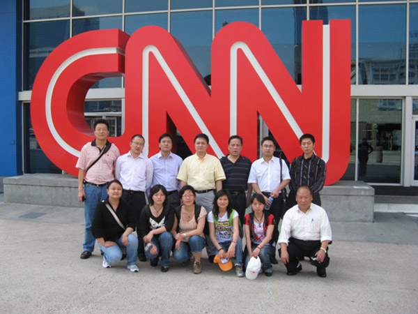 如果到了亚特兰大,没有去CNN总部大楼参观,就等于没来亚特兰大。此话有点夸张,但确实作为美国最大的24小时新闻台是亚特兰大人的骄傲。这个以真实和快速为生命的CNN开创了全球电视报道的先河。所以,我们忙里偷闲还是去了CNN。眼见为实,CNN的总部大楼可供游人参观,这个包括了CNN的历史,直播间,办公楼和CNN纪念品专卖店集一身的大楼设计非常别致。小编我更是感到华网要向CNN学习,把更有价值的信息以更快的速度带给华网会员。 展团部分人员人员在CNN大楼的巨大LOGO前合影留念。 CNN大楼内部