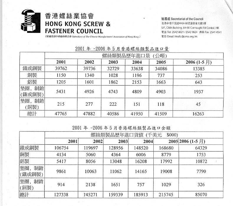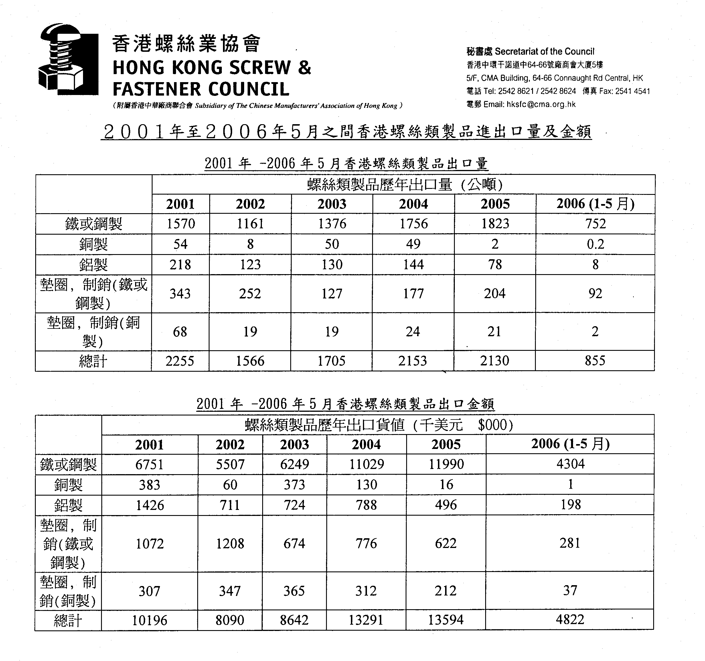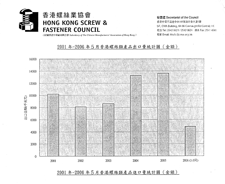 2001-2006.5香港螺丝类制品出口量统计图(金额)