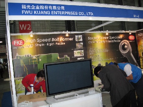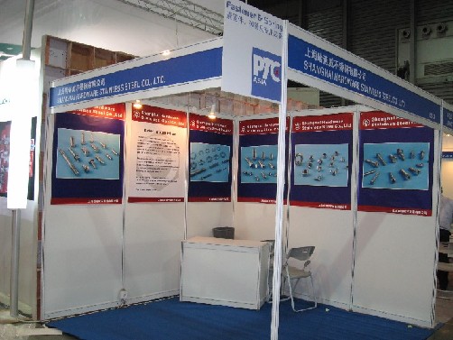 还好不耽搁布展的时间,我们下午四点赶到了上海新国际博览中心(PTC展会)。我们华人螺丝网的展位不大,布置起来不复杂,人比活多!所以有不少闲暇时间东张西望,对各个参展企业未成型的、未成熟的、甚至凌乱的……展位逐一评头论足,哈哈……