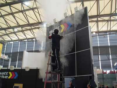 在展览的过程中,有家参展企业的灯起火并冒出大烟,现场的工作人员在极短的时间内赶到,并动用灭火器灭火。引得很多人驻足围观,还有老外在拍照,Chenar也把它拍下来了。
